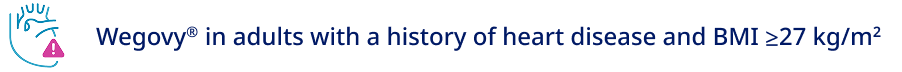 Wegovy® is used to reduce the risk of non-fatal heart attacks in adults with a history of heart disease (like a heart attack, stroke, or poor blood flow to the limbs) and a BMI ≥27 kg/m2.